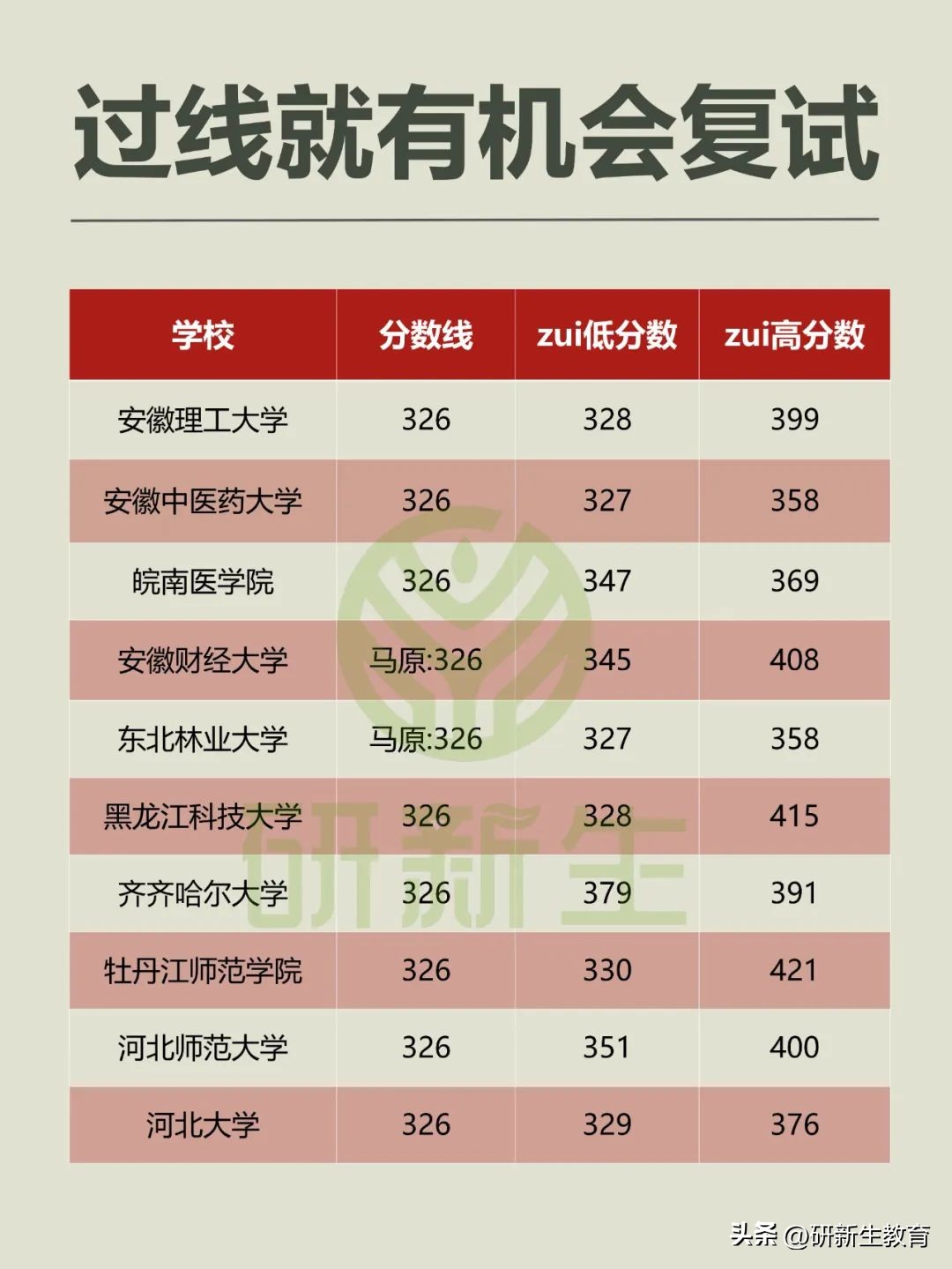 为了更好地帮助大家择校,研新生为大家整理了过线就有机会进复试的马理论考研院校,分别整理了这些院校的复试线、录取最低分数和最高分数,以供参考!
