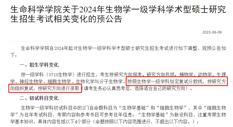 华东师范生命科学学院:按照生物学一级学科划定复试分数线,按研究方向组织复试,按研究方向进行录取。